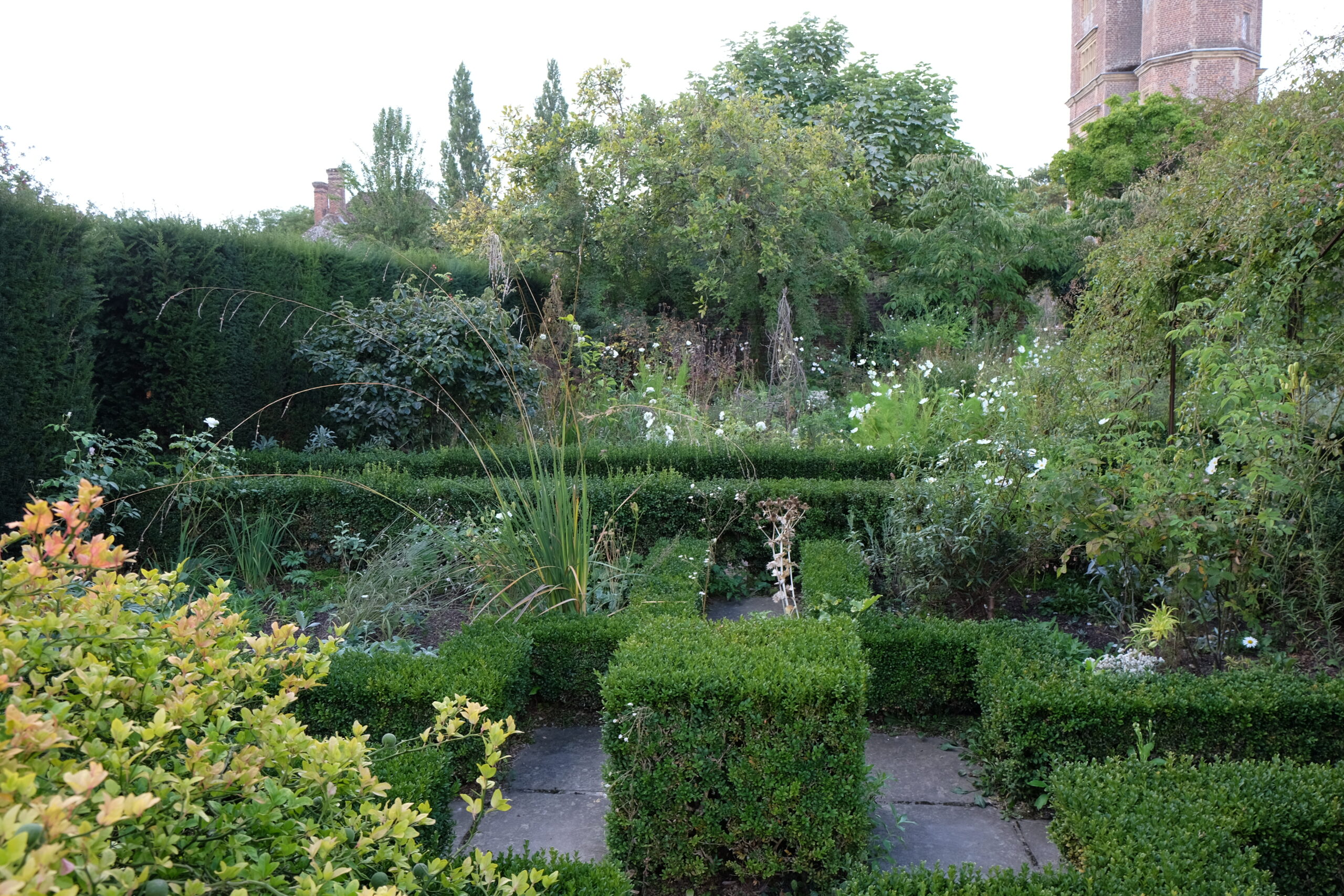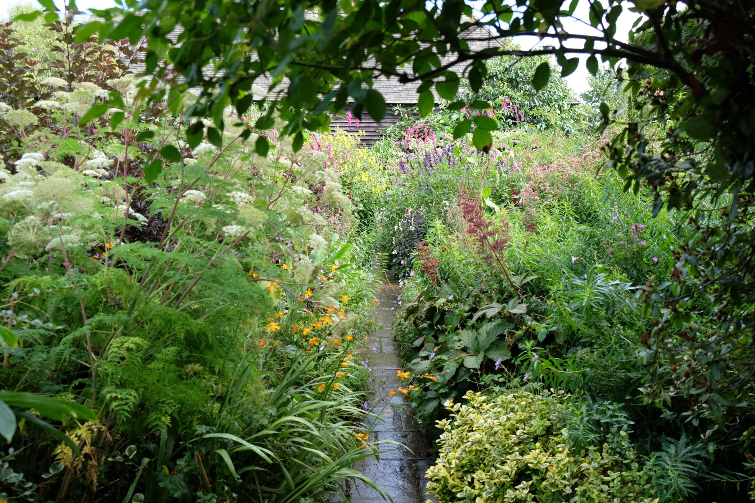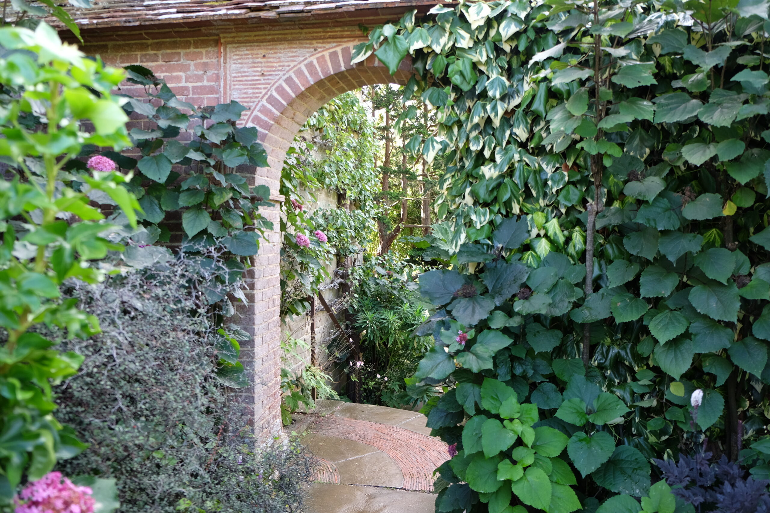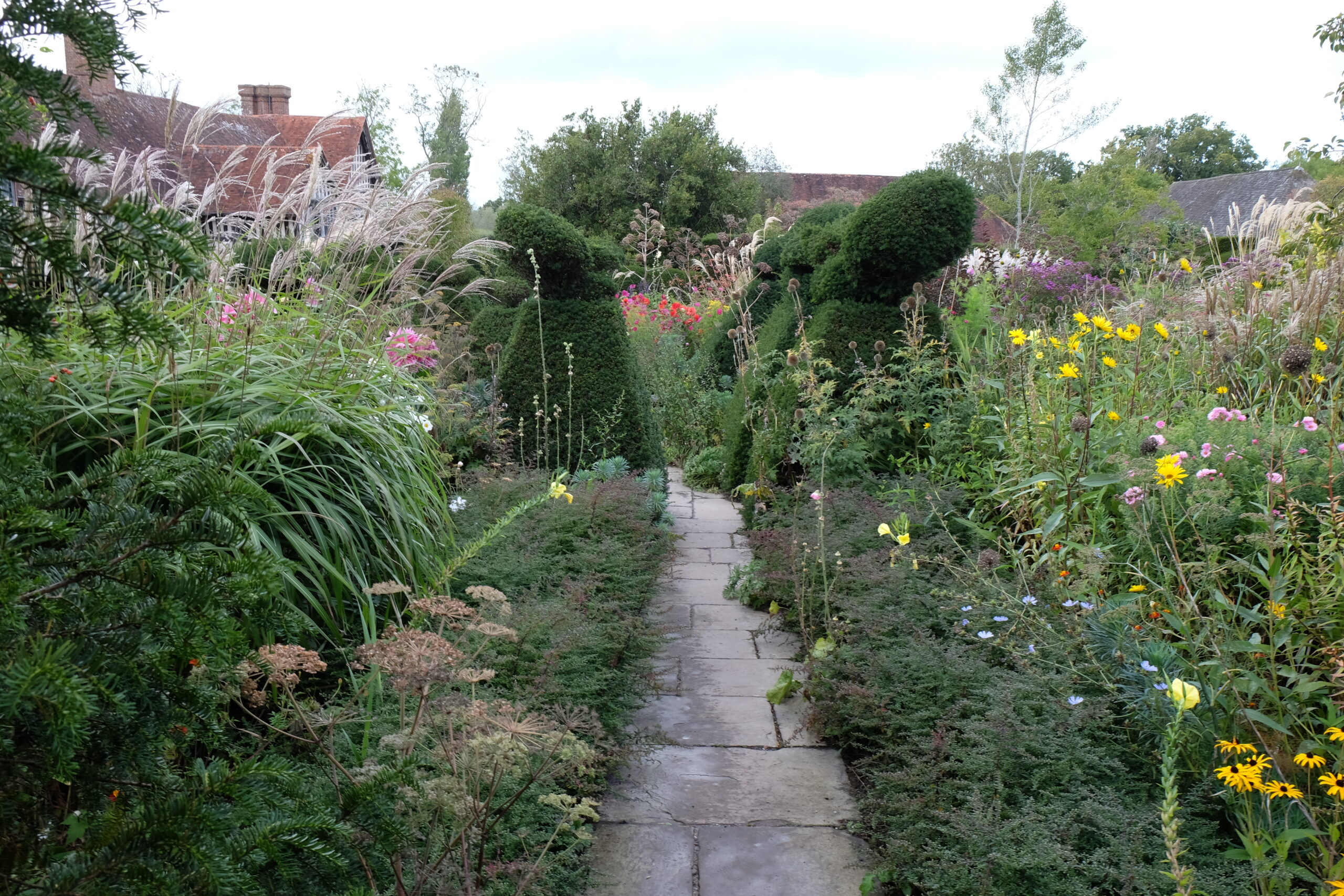 Trädgården vid Sissinghurst Castle Gardens anlades av författaren Vita Sackville-West och hennes make Harold Nicolson under 1930-talet och består av ett tio olika trädgårdsrum med olika karaktär. Romantiska och vilda planteringar ramas in av stram, rumslig struktur. Ett av de mest berömda rummen är Vita trädgården som består av vitblommiga växter omgivna av frodig grönska. Vi finner här också “Delos” den medelhavsinspirerade del som tillkom efter en längre vistelse i Grekland.
